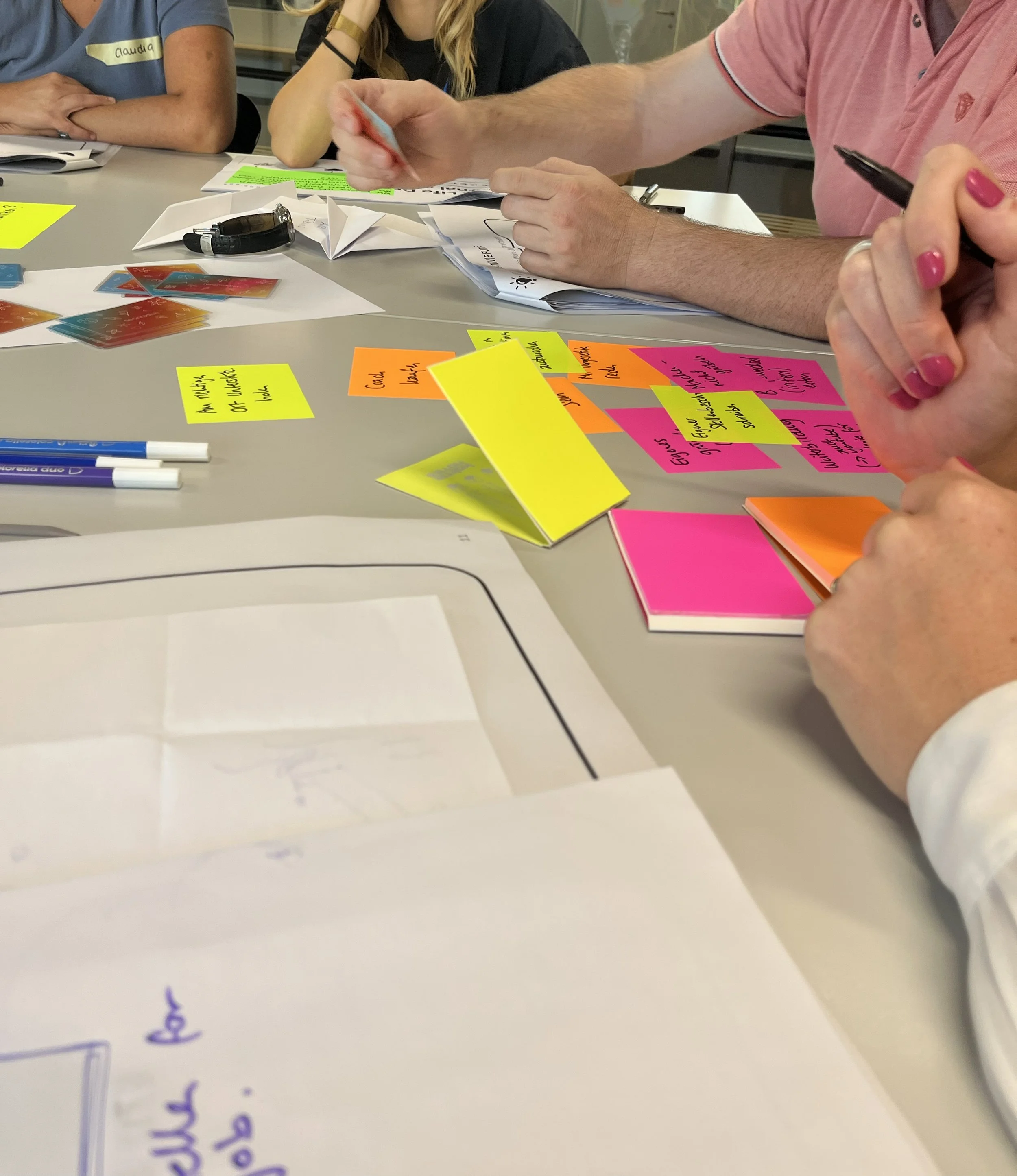Fabienne: Es gibt einige. Zwei Highlights sind mir besonders geblieben. Das erste Highlight: Die Magie und die Kraft von Co-Kreation für die Arbeit an eigenen beruflichen Herausforderungen. Wenn wir als Facilitator:innen einer Gruppe von fremden Menschen mit unterschiedlichen Berufen, Funktionen, Hierarchien, Persönlichkeiten, Erfahrungen und Lebensgeschichten einen Gestaltungsraum bieten können, um gemeinsam kreative und starke (Zukunfs-)ideen zu entwickeln für ganz unterschiedliche, individuelle Herausforderungen – that’s where the magic happens. Mein zweites Highlight: Mich beeindruckt immer wieder der Moment, wenn sich die Kursteilnehmenden ihrer Gestaltungskraft- und -möglichkeiten bewusst werden. Denn: Auch in einem vorgegebenen Rahmen kann man etwas bewirken und bewegen.